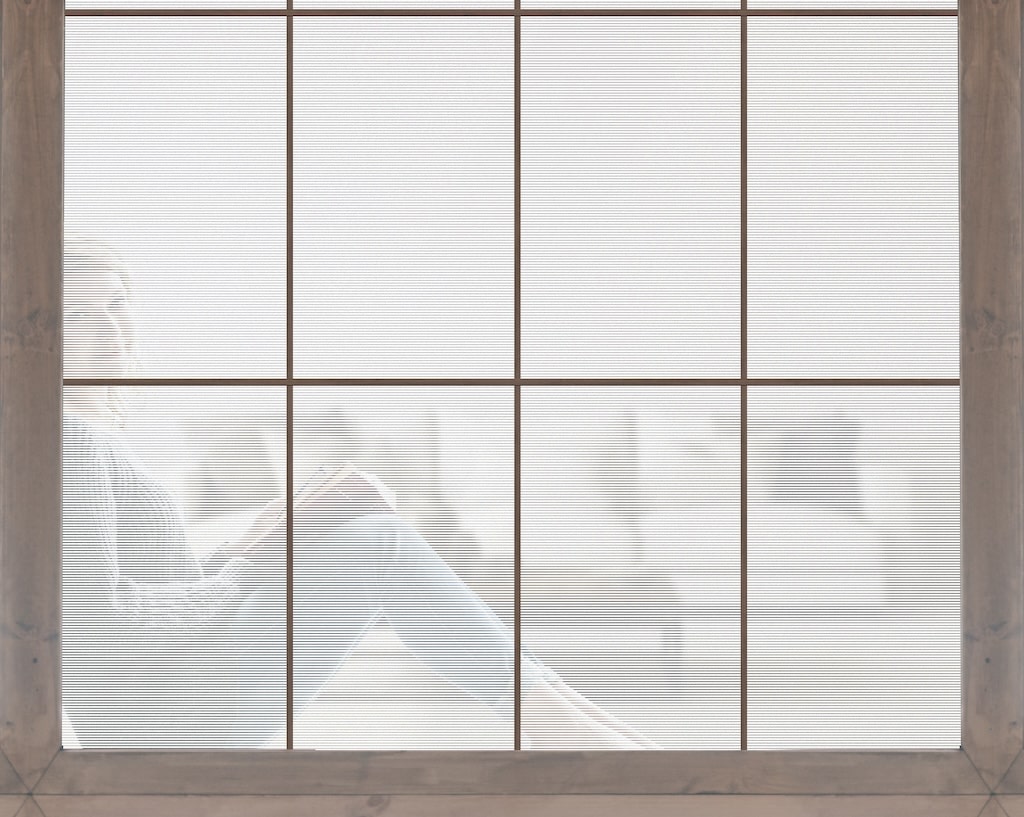 Декоративная плёнка с полосками 0,4 см добавляет интерьеру графичности, не перегружая пространство. Матовый фон скрывает помещение от посторонних глаз, а тонкие линии визуально удлиняют стекло. Устойчива к царапинам, легко моется и отражает 30% ИК-излучения.